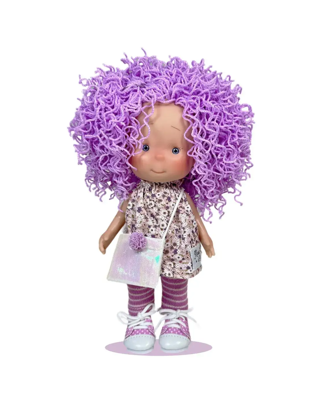 Κούκλα Little Mia με μάλλινα μωβ μαλλάκια (24 cm).
